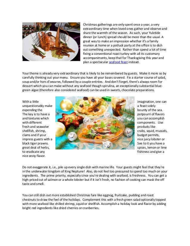 292 recipes in this collection. Christmas seafood recipes to get ahead with your festive feast planning. These delicious and stunning seafood recipes are actually so much easier than you think to prepare for a celebration. Have a recipe that you'd like to share on eat well? Your theme is already very special that is likely to be remembered by guests.